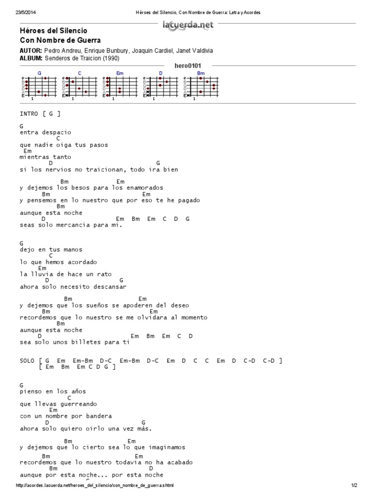 Heroes Del Silencio Con Nombre De Guerra G C Em D Bm - Solo son testigos de la otra mitad dos besos son demasiado.
